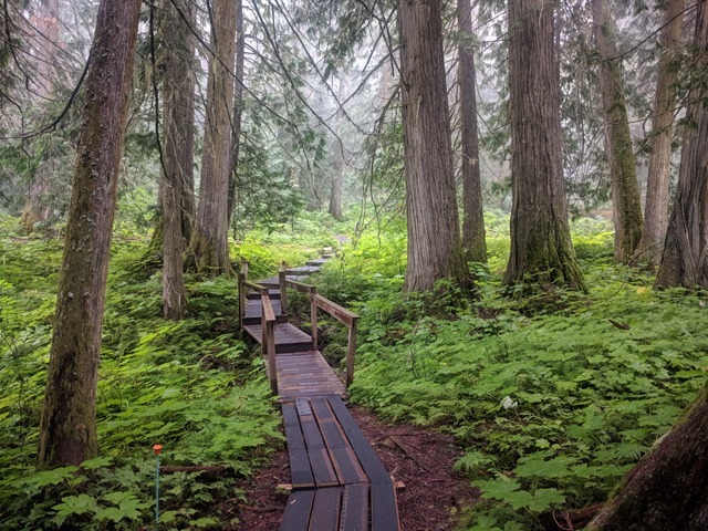 From here, we had planned on going to Mount Robson Provincial Park. But since the mountain camera showed heavy smoke in the area, we decided to venture further north to the Ancient Forest instead. It gets it name because many of the red cedars here are between 1000-2000 years old. This is actually a rare inland temperate rainforest, and one that is the furthest from the coast. Miraculously it was saved from logging and still stands today. This rainforest could actually be classified as a snowforest as the snowpack in the winter actually is what keeps the forest going through the dry summers.